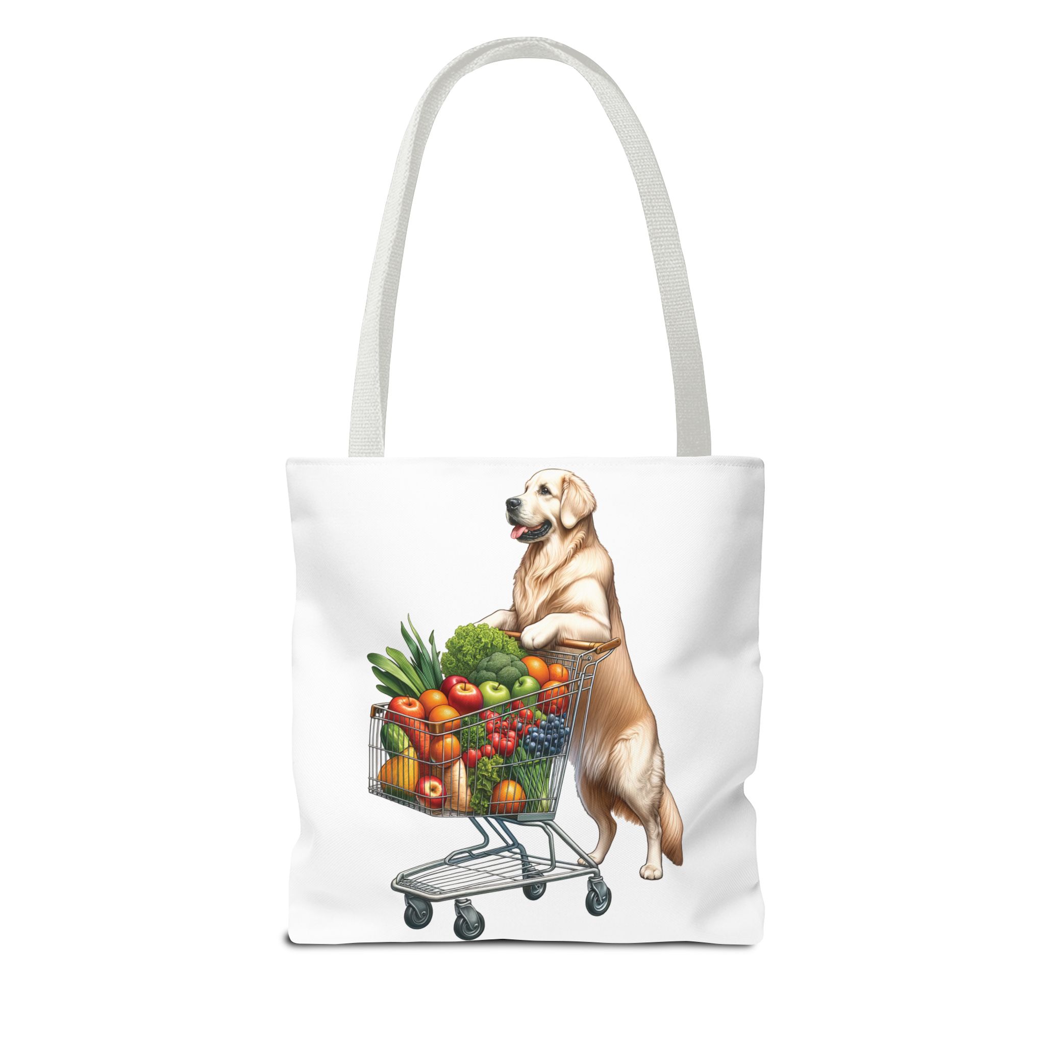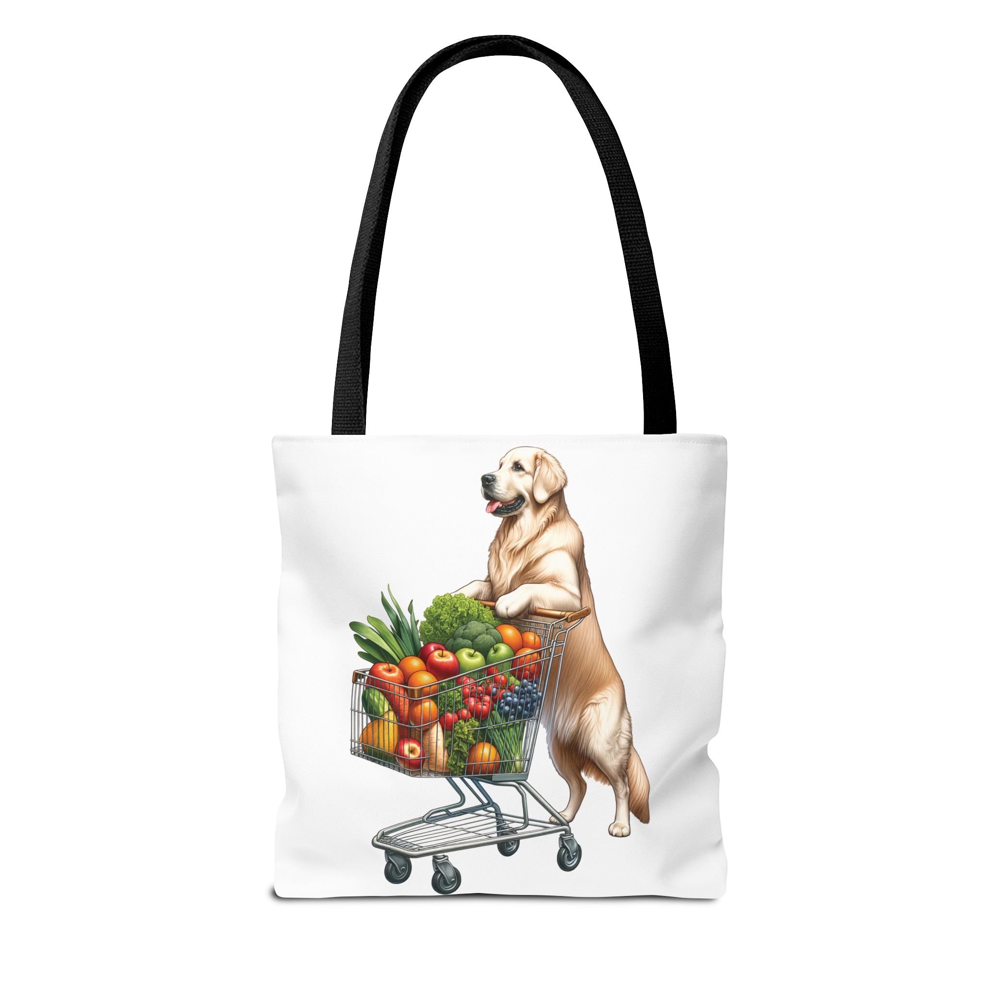 Meet Marvin, the charming Golden Retriever who loves nothing more than helping his human with the weekly grocery run. Every Saturday, Max can be seen happily pushing a shopping cart brimming with fresh produce, his tail wagging with enthusiasm. This delightful scene is beautifully captured on our exclusive tote bag, making it a perfect accessory for Golden Retriever enthusiasts. Whether you’re heading to the farmer’s market, the beach, or just running errands, Marvin is here to bring a smile to your face and a touch of canine joy to your day.